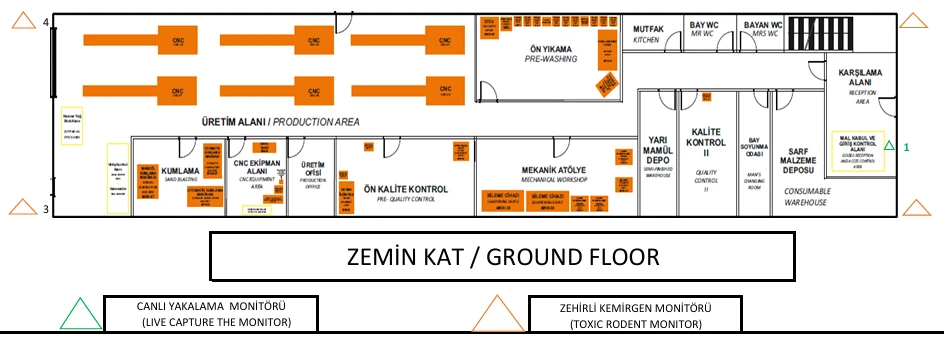 Tesis içerisindeki izleme noktaları kroki üzerinde işaretlenir ve düzenli takip edilir.