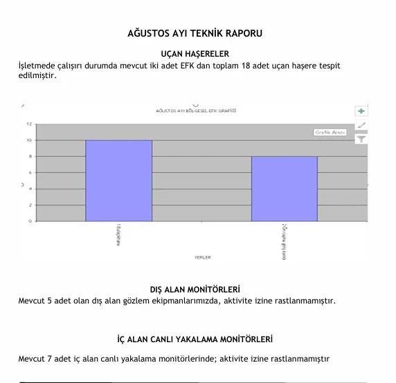Uygulama sonrası hazırlanan aylık teknik rapor, grafikler ve saha kayıtlarıyla birlikte sunulur.